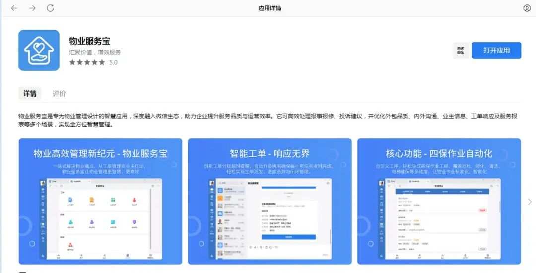 就在这位经理快扛不住的时候,他们公司引入了物业服务宝—— 一款基于企业微信生态的 SaaS 应用。别被 “SaaS”“生态” 这些词吓到,说白了就是把物业需要的沟通、服务、管理功能,全装进一个系统里,而且能在手机上直接用,不用单独装复杂软件。