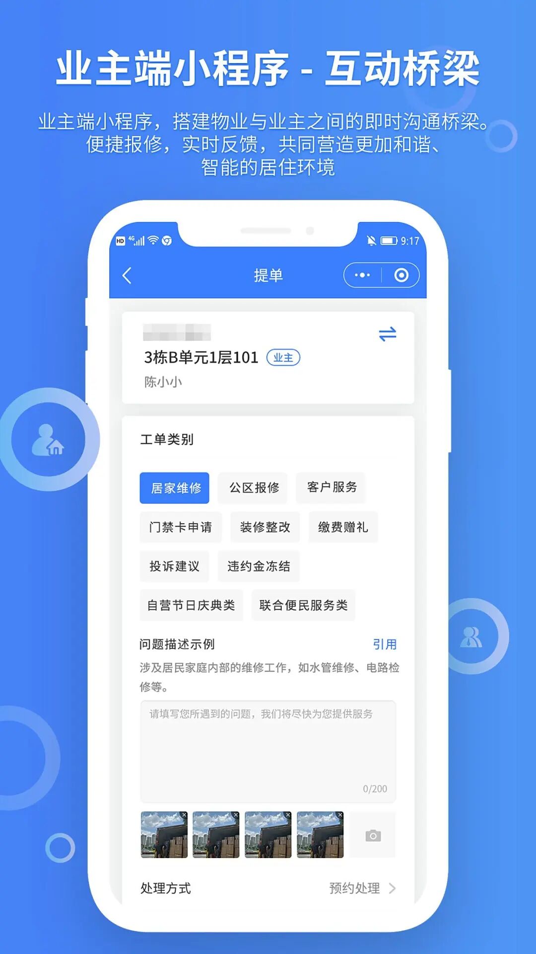 报修、投诉、缴费这些事儿,现在全能在线上搞定。业主在小程序上点几下,就能提交报修申请,系统会自动根据问题类型派给对应的维修师傅,还能生成工单实时追踪进度。师傅修完上传照片,业主在线确认签字,整个流程快的话半小时就能走完。
